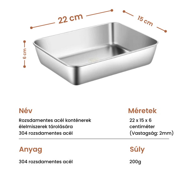 🌈 304 rozsdamentes acél ételtartó (25*20*6cm)