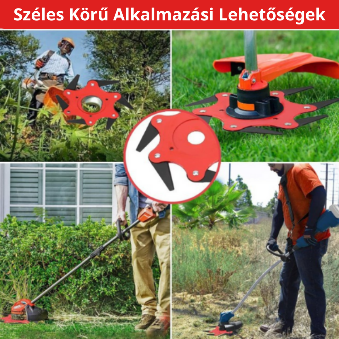 A fűnyíró penge sokféle terepen használható, például kertekben, pázsitokon, parkolókban, udvarokban, járdákon stb. Akár gyomok, magas fű, akár kis fák eltávolításáról van szó, ez egy nélkülözhetetlen eszköz.