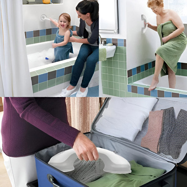 🚿 Egyszerűsítse mindennapi tevékenységeit egy hordozható fogantyúval, amely alapvető támogatást nyújt a kádba való be- és kiszálláskor vagy felálláskor.