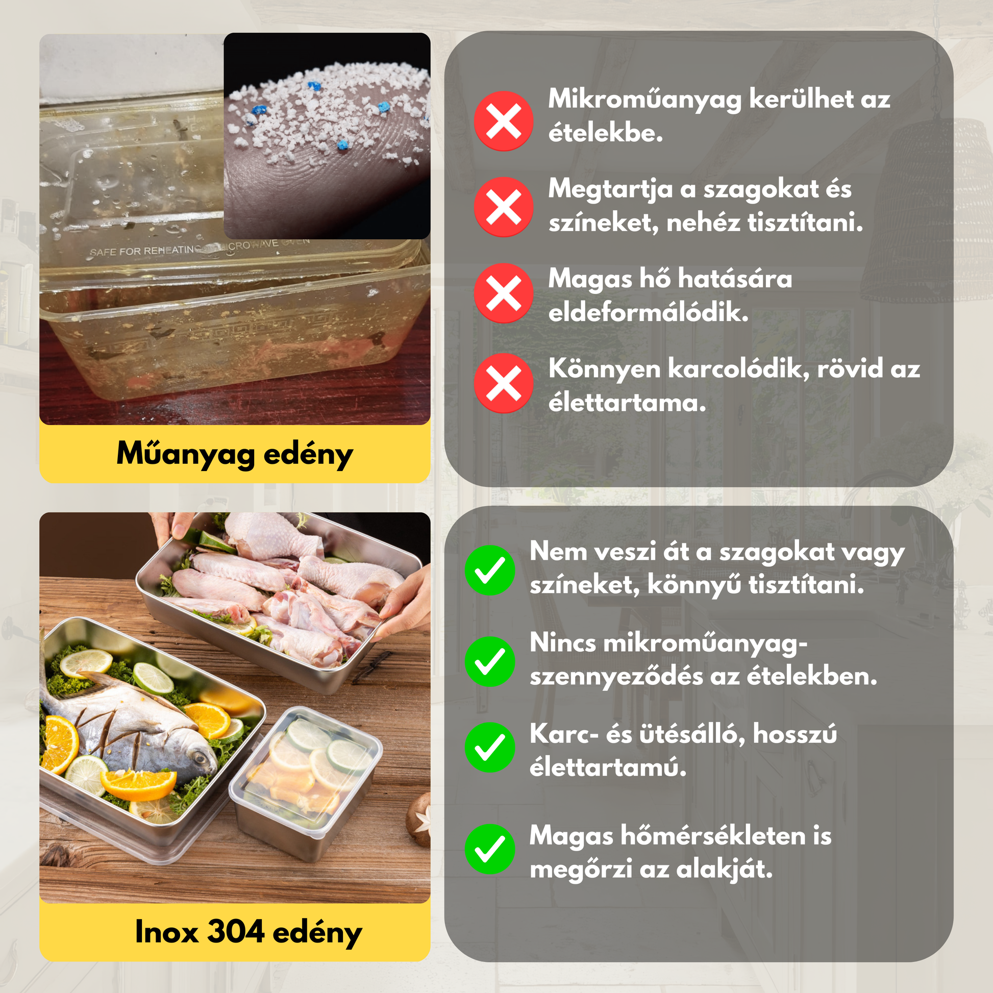 Élelmiszertartó 304-es rozsdamentes acélból – Hosszabb frissesség és maximális biztonság