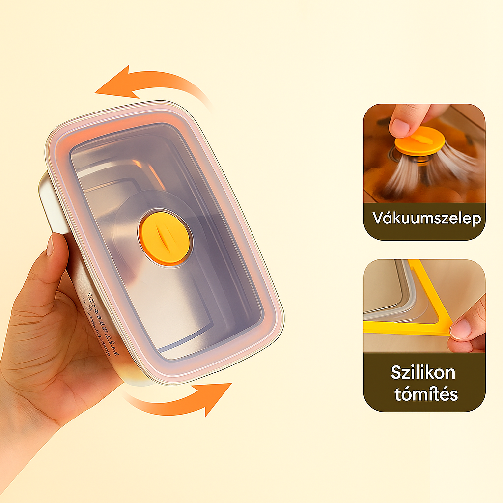 • Légmentes és szivárgásmentes — Vastag szilikontömítéses fedél vákuumzárral. Utazáshoz is biztonságos.